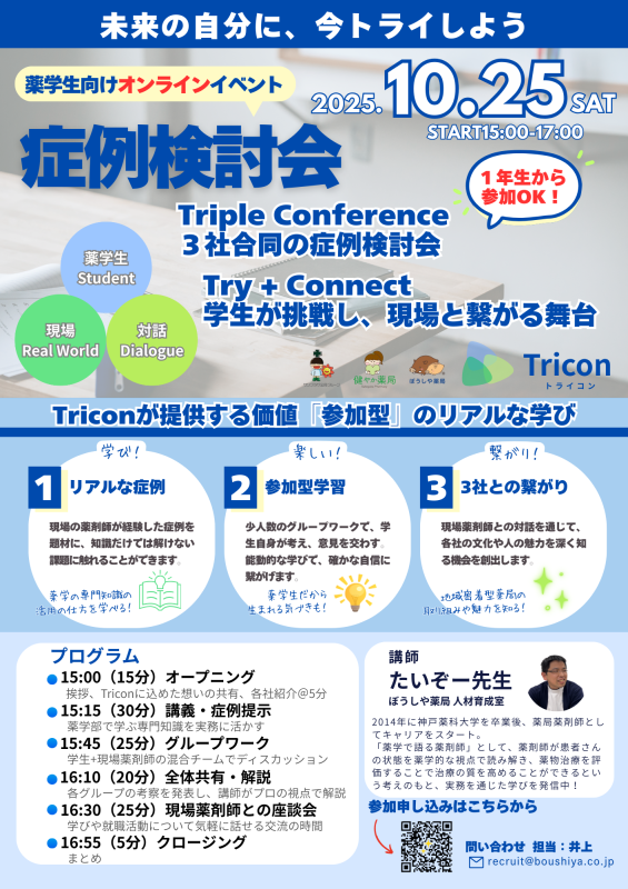 講義や症例検討の他、現場薬剤師との混合チームでのグループディスカッションなど